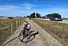 Enkle, gruslagte stier i stedet for gang- og sykkelvei nevnes som et enkelt tiltak som kan gi bedre trafikksikkerhet deler av året, men utredningen påpeker at slike stier er ikke universelt utformet. Bildet er fra en kommunal sti langs fylkesvei 43 ved Bausje i Farsund som er en del av Vita Velo-sykkelrutene i Agder.
