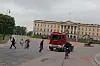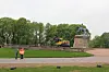 Man gjorde også klart til å sette opp sperregjerder, ettersom plassen stenges for ferdsel i deler av anleggsperioden. De som har sin daglige gange gjennom Slottsparken og over Slottsplassen må finne seg en ny rute.