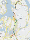 Kartet viser delstrekning 2 på Sykkelstamvegen i Bergen som no skal bli bygd ut. Strekningen er markert med rød farge og går frå Apeltunvannet til Nesttunbrekka. Kart: Statens vegvesen