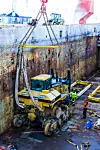 – Etter noen diskusjonsrunder endte det med at vi måtte få hjelp av en mobilkran fra Nordic Crane til å løfte doseren om bord i båten. Det var for så vidt en kurant sak, men da doseren hang i kranen, så de med forskrekkelse at maskinen veide 69,8 tonn. Vesentlig tyngre enn hva vekten til Vegvesenet hadde oppgitt. Mobilkranen til LNSS i Longyearbyen hadde bare kapasitet til å losse 65 tonn, og plutselig var gode råd dyre for å få doseren på land på Svalbard, forteller Storbråten.