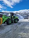 Den elektriske hjullasteren LiuGong 856 HE har brøytet E16 på Filefjell og Hemsedalsfjellet siden i januar.Foto: Rental Group