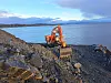 Vassbakk & Stol sin nye 70-tonns el-graveren laster tunnelmasser til lekter ved Rogfast-prosjektet.