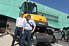 Hennum besøker Intermat sammen med blant annet Arild Nilsen, produktansvarlig for Mecalac i Normann Olsen Maskin. På Mecalac-standen kan Nilsen blant annet fortelle at Mecalacs MCR-serie kompakte beltegravere nå kan leveres med stålbelter.