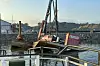 En lekter med en gravemaskin var søndag i fare for å kantre ved havna i Eydehavn i Arendal kommune. Foto: Redningsselskapet/ handout / X / NTB