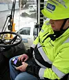 Maskinføreren må først blåse en godkjent alkotest og deretter «tæppe» mobiltelefonen med en egen app påslått på en leseplate før maskinen kan starte.