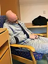 Han ser på henne med tunge øyne. Gudjonsson er i dag helt klar i hodet, men kan ikke legge til noe når kona snakker. Han uttrykker likevel at han husker sitt første minne etter hjerneslaget.