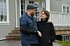 Gudjonsson peker på ansiktet til Gudjonsdottir og smiler.