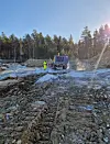 Tørt borestøv på bakken. Bildet ble tatt i mars 2025, da Arbeidstilsynet besøkte Havnen Anlegg.