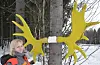 Fredag var de første sju av 100 fargerike elggevir på plass i trærne langs riksvei 3 i Østerdalen.