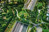 En park over motorveien gir dyr og planter trygge forbindelser mellom områdene på hver side av veien. Foto: Swecos nye Urban Insight-rapport «Biodiversity in practice – from loss to gain»