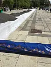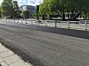 I og med at asfalten skal fjernes allerede dagen etter rulleskishowet er fresmasser og asfalt lagt oppå duk.