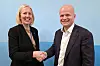 Konsernsjef Agnete Johnsgaard-Lewis i Bane Nor og daglig leder Lars Petter Lund i Sateba. Foto: Bane Nor