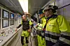Sammen med blant andre prosjektleder Anne Katrhine Kalager i Bane NOR og anleggsdirektør Matteo Ortu i det spansk-italienske arbeidsfellesskapet Acciona Ghella, besøkte Frimannslund en av de fire tunnelboremaskinene som graver tunnelen.