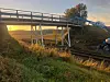 Den Sæter bru er nå revet for å gi plass til det nye krysningssporet som skal bygges. Foto: Infrakraft