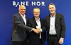 Manuel Borràs, Azvis leder for forretningsutvikling i Norge (t.v.), Hans-Egil Larsen, prosjektdirektør i Bane NOR og Bjørn Aage Innstrand, administrerende direktør i RIAS, signerte kontrakten på om lag 500 millioner kroner i Bergen mandag.