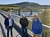 Ved Minnesund bygges nå det som blir Norges lengste jernbanebru. Frps transportfraksjon på Stortinget fastslår at man ikke får mye nytte av denne brua og andre investeringene på Dovrebanen før dobbeltsporet bygges ferdig frem til Åkersvika ved Hamar. F.v. Bård Hoksrud, Morten Stordalen og Tor Andre Johnsen.Foto: Frp