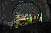 Arbeiderne i TBM-maskinen kommer ut til stor applaus.
