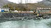 Ei gravemaskin stablar naturstein opp i nær 100 meters lengde langs breidda på Flåmselvi. Frå toppen av fyllinga er det nokre få meter bort til den populære turistbana.