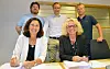 Administrerendedirektør i Baneservice, Ingvild Storås (f.v.) signerte sammen med fungerende områdedirektør i Bane NOR kontrakten som skal gi Alnabru godsterminal et løft. Bak står fra høyre: Martin Pretorius, og Terje Wilhelmsen fra Baneservice sammen med Hans Jørgen Eek, Bane NOR.