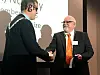 Thomas Potter (til høyre) fra Norconsult er vinner av den første Nordic Light Rail Prize.