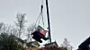 Slik så det ut da en gravemaskin ble løftet ned til nedsiden av Troldhaugen. Foto: Jostein Pedersen/Bergen kommune