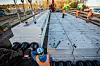 Bruelementene monteres i en rekke for å danne ferdige bjelker som satt side ved side vil utgjøre en komplett brukasse. Illustrasjon: Spanbeton