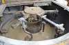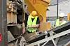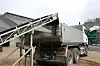 Etter få minutter kommer den ferdige massen ut på båndet og slippes ned på lasteplanet til kunden.