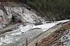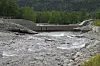 Lenger opp i lia i den rasutsatte Veikledalen. Nederst i dalen har NVE ferdigstilt første del av sitt flomsikringsprosjekt og etablert en bunnlastsperre.