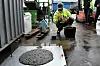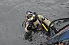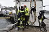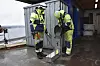 Lasse Fagerli i Dykkerteknikk får hjelp av Espen Korsell i Bodykk til å ta av dykkerutstyret.