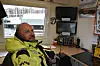 Glenn Johansson kommuniserer med dykkeren inne fra kontrollrommet.