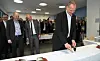 Solvik-Olsen, kjent for å like kaker, lot seg ikke be to ganger etter at han og flere sentrale personer hadde holdt tale inne i et stort partytelt for å markere Spenncons nye svillefabrikk.