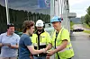 Pia Reidun Muhonen mottar kursbevis av Lars Hæhre og Kristian Thoresen i BetonmastHæhre etter fullført skoleprosjekt K65 i Vikersundbakken. Foto: Svanhild Blakstad