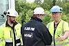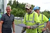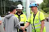 Lars Hæhre og Kristian Thoresen i BetonmastHæhre ønsker Carlos Klemmetvold lykke til etter endt skoleprosjekt i Vikersundbakken. Foto: Svanhild Blakstad
