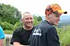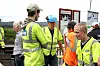 Daglig leder Lars Hæhre (t.v) og driftsleder Kristian Thoresen gir velfortjent honnør til en av deltakerne på skoleprosjektet K65 i Vikersundbakken. Foto: Svanhild Blakstad