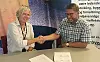 Tone Marie Hølmebakk fra Omsorgsbygg og Håvard Kjendseth fra Steen & Lund AS signerer avtalen.