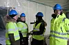 Adm. dir. Harald V. Nikolaisen, eiendomsforvalter Bente Næverdal, kommunikasjonsdirektør Hege Njaa Aschim, alle i Statsbygg, samt eiendomssjef Jan Myhre i Longyearbyen lokalstyre, på befaring på anlegget. ( Klikk for større versjon)