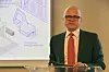 Bellona-leder Fredric Hauge holdt innlegg på leverandørkonferansen om utslippsfrie bygge- og anelggsplasser 15. mai. Foto: Svanhild Blakstad