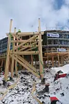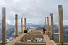 Alt limtre er nå montert på resturantbygget på toppen av Nesaksla. Foto: Joakim Bjørlykhaug