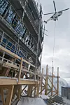 – Absolutt alt av mannskap, utstyr og materialer må flys opp med helikopter, og alt må planlegges ned til minste detalj. Alle bygningselementer må prefabrikeres før de flys opp i fjellet, og det er svært krevende logistikkoperasjoner, sier Andenæs til Byggeindustrien.