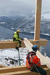 – De har kjennskap til terrenget, vær og vind. Dette er veldig motiverte og løsningsorienterte folk, og det er helt nødvendig for å jobbe oppe i fjellet slik de gjør. Vi opplever en veldig tydelig lokal forankring og eierskap i dette prosjektet. Jeg kan love deg at stemningen gikk i taket forleden kveld da vi var ferdige med limtremontasjen, avslutter Andenæs.