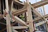 Det er store dimensjoner på de seks siste limtrerammene som ble nylig ble montert av Christie på restaurantbygget på toppen av Nesaksla over Åndalsnes. Foto: Joakim Bjørlykhaug