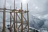 ROMSDALSGONDOLEN: Fra montasjen av limtrerammene på toppen av Nesaksla. Foto: Joakim Bjørlykhaug
