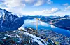ROMSDALSGONDOLEN: Fra byggingen av restaurantbygget og fjellstasjonen på toppen av fjellet Nesaksla over Åndalsnes. Bildene er tatt i februar. Foto: Brunes foto