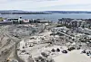 STARTEN: Oversiktsbildet viser starten på utgravingen for Fornebubanen til venstre, mens det kun er rester igjen av Hangar 3 til høyre. Foto: Trond Joelson