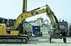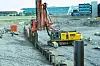 SPUNT. I den enorme byggegropa gjøres det klart for endestasjon og basestasjon til Fornebubanen. Her sveises spuntnåler langs traseen til den nye t-banestrekningen. Foto: TROND JOELSON