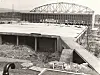 KOKSA UNDER BYGGING: Dette bildet, tatt i 1959 eller 1960, viser Hangar 1 som en frittstående struktur, med den opprinnelige bærende konstruksjonen. Arbeidene med å bygge verkstedbygget og Hangar 2 er så vidt påbegynt. Det som imidlertid allerede er bygget er plattformen foran hangar 2. Foto: Luftfartsverket