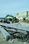 Her er er rivingen av Hangar 4 i full gang pr 21. mai. Foto: Bjørn Innhaug