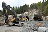 Skanska har sprengt ut den enorme stasjonshallen i Holmestrand. HENT, som har ansvaret for innredningsentreprisen, begynner sine arbeider inne i hallen når Skanska er ferdig med «grovarbeidet» i januar. Foto: Anne Mette Storvik, Jernbaneverket.