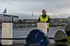 Samferdselsminister Knut Arild Hareide da han ankom byggeplassen.