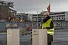 Miljøbyråd Lan Marie Berg sprengte den første offisielle salven på Fornebubanen.